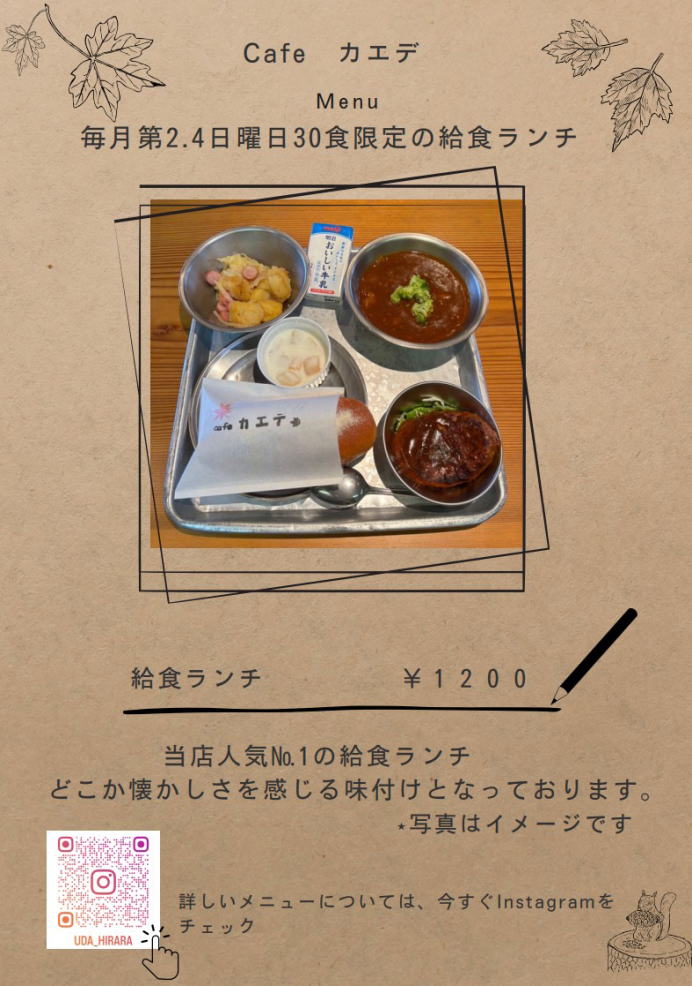 給食ランチは2025年5月より第2第4日曜の提供になります。